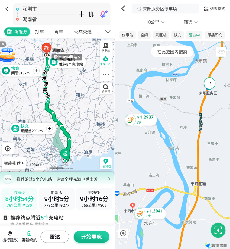 我们还是以那位耒阳的车主为例,他从深圳出发到湖南,全程700多公里,沿线至少有多达5个服务区直流快充站,但是车主等到快没电了才不得已在耒阳服务区排队充电。