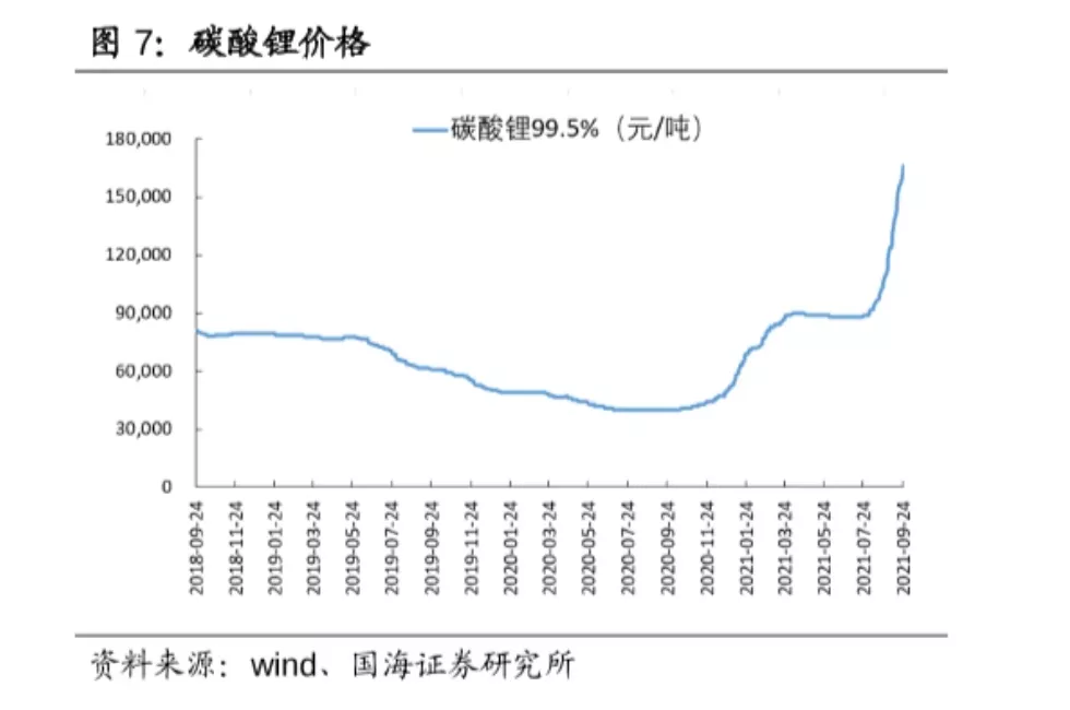 而和锂矿储量较低形成鲜明对比的是,中国是全球最大的锂电池生产国家,生产了全球约70%的锂电池。这种巨大的供需矛盾,就必然推动包括宁德时代这样的锂电池供应商加速布局锂电池产业链上游,确保自己的锂电池供应。如果不进行产业链上游原材料的布局,一旦进入锂矿的涨价周期,必然会导致宁德时代这样的动力电池供应商承受比较大的成本压力。而从当前实际情况来看,碳酸锂价格持续大涨。当前99.5%(电/国)碳酸锂均价报17~18万元/吨,较去年8月的4万元/吨上涨超3倍。对于电动车来说,如果成本上涨过快导致终端零售价格也出现大幅上涨,必然会影响整个电动车行业的发展。而布局了上游锂矿资源,对于宁德时代这样的电池供应商来说能够最大程度对冲锂矿价格的上涨,确保自身产品价格的稳定。