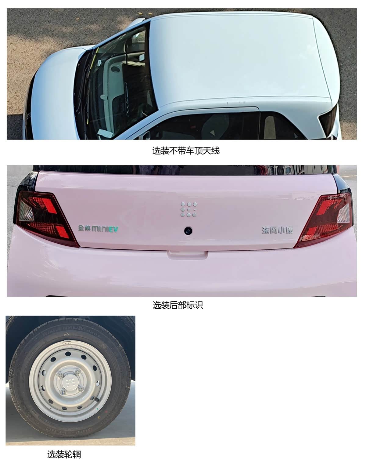 从车尾可以看出,此次申报新车有两个版本,车名分别为风光MINI EV和金果MINI EV两种,由“小康MINI EV”到如今新名,去掉“小康”这个品牌名,最直观的感受就是,更接近宏光MINI EV了。新标新名称,不排除新车型将来另有新规划。