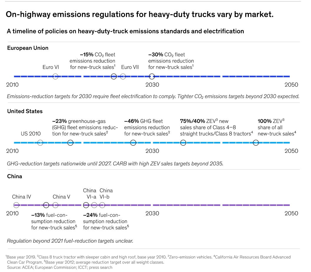 麦肯锡的《氢内燃机如何为零排放做出贡献》一文指出:在世界上许多最大的市场,监管机构正在收紧公路卡车的排放规定。