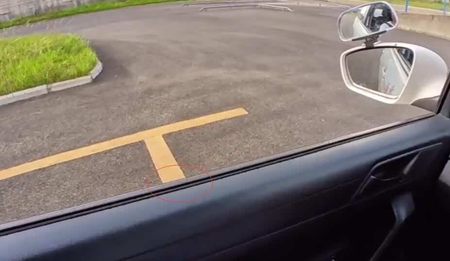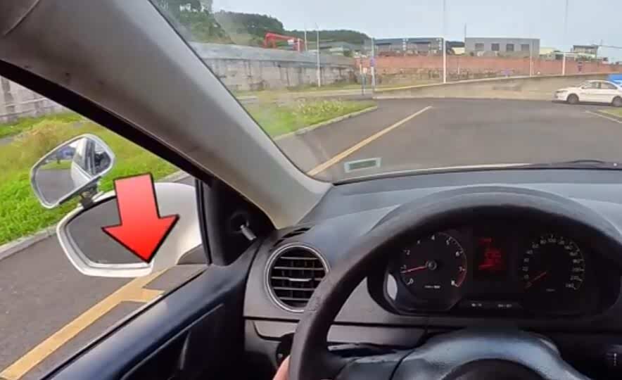 2、考试车内门把手超过倒车线或者是肩膀对其倒车线的时候,我们停车;
