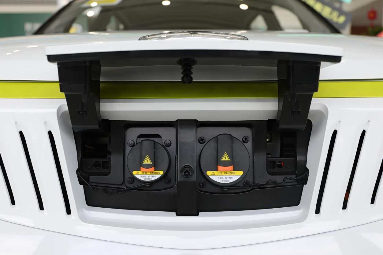 而快慢充接口均设计在车身格栅位置盖板下面,我们只需要按一下盖板,即可将其打开。官方宣传,该车在直流快充下的 30%-80%充电时间为 30min。