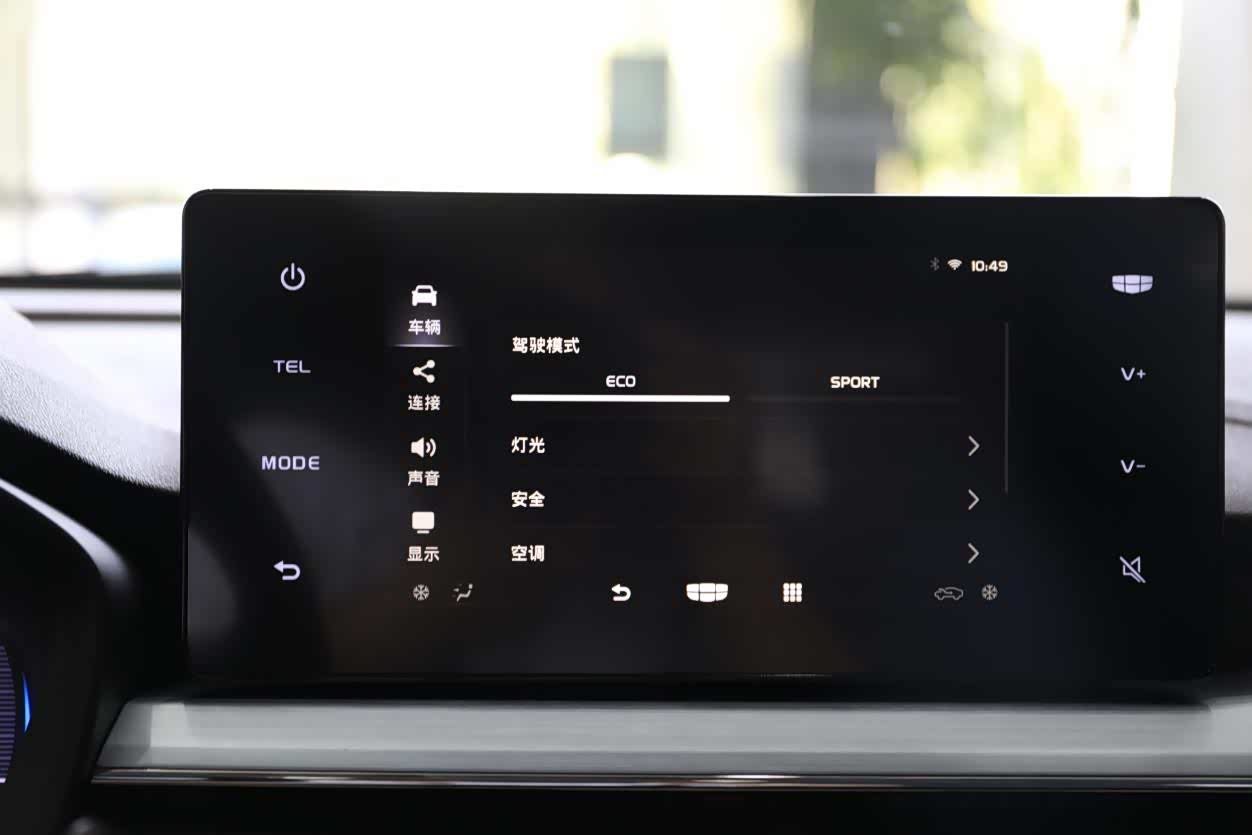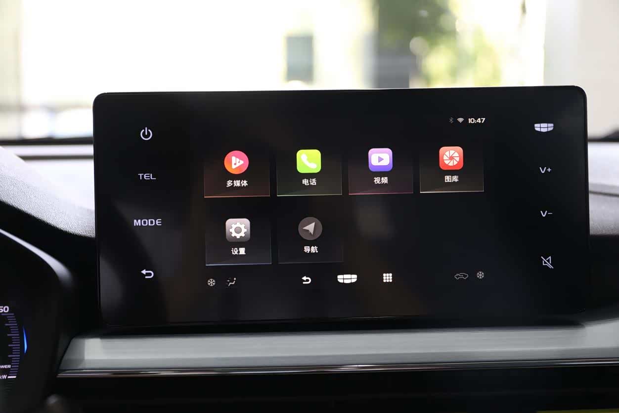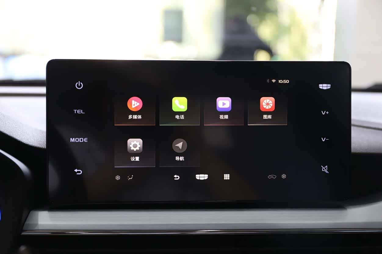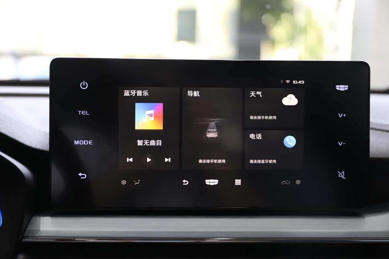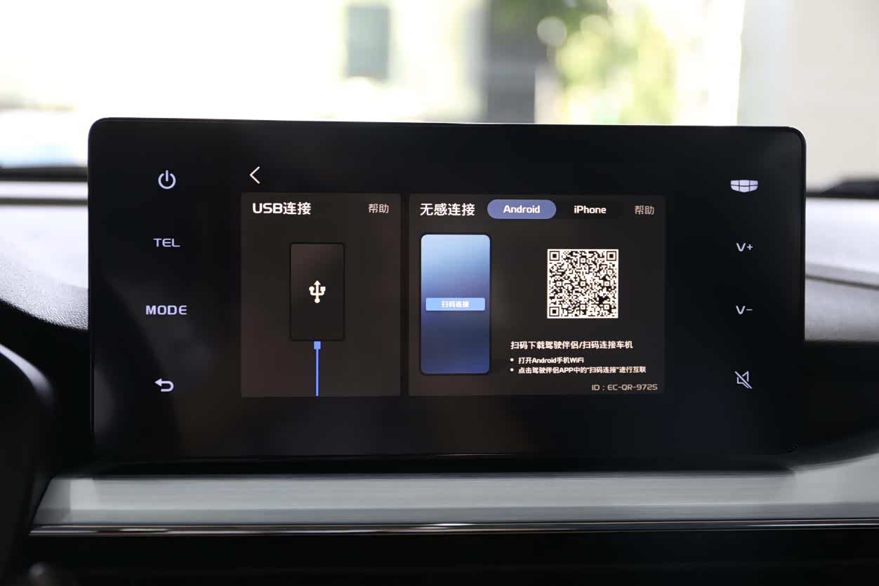 在中控台上,8英寸的悬浮式液晶大屏并非摆设,几何汽车为其配备了一套实用的车机系统。在屏幕上,用户不仅可以查看车辆的各种信息、切换驾驶模式,同时还能实现与安卓、IOS设备的连接,实现手机投屏,并支持手机QQ音乐、喜马拉雅、高德地图导航等多种手机APP车机同步显示,提升了在车上使用手机的便利性。