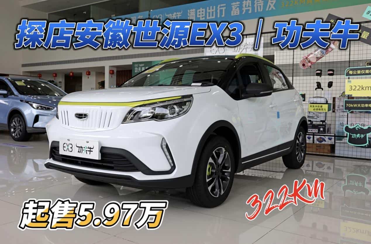来自吉利旗下的新能源品牌几何汽车,推出了起售价仅5.97万元的纯电小车——几何 EX3 功夫牛,今天也是前往合肥安徽世源新能源汽车店一趟究竟!看看这个6万预售的家伙,到底有啥能耐!
