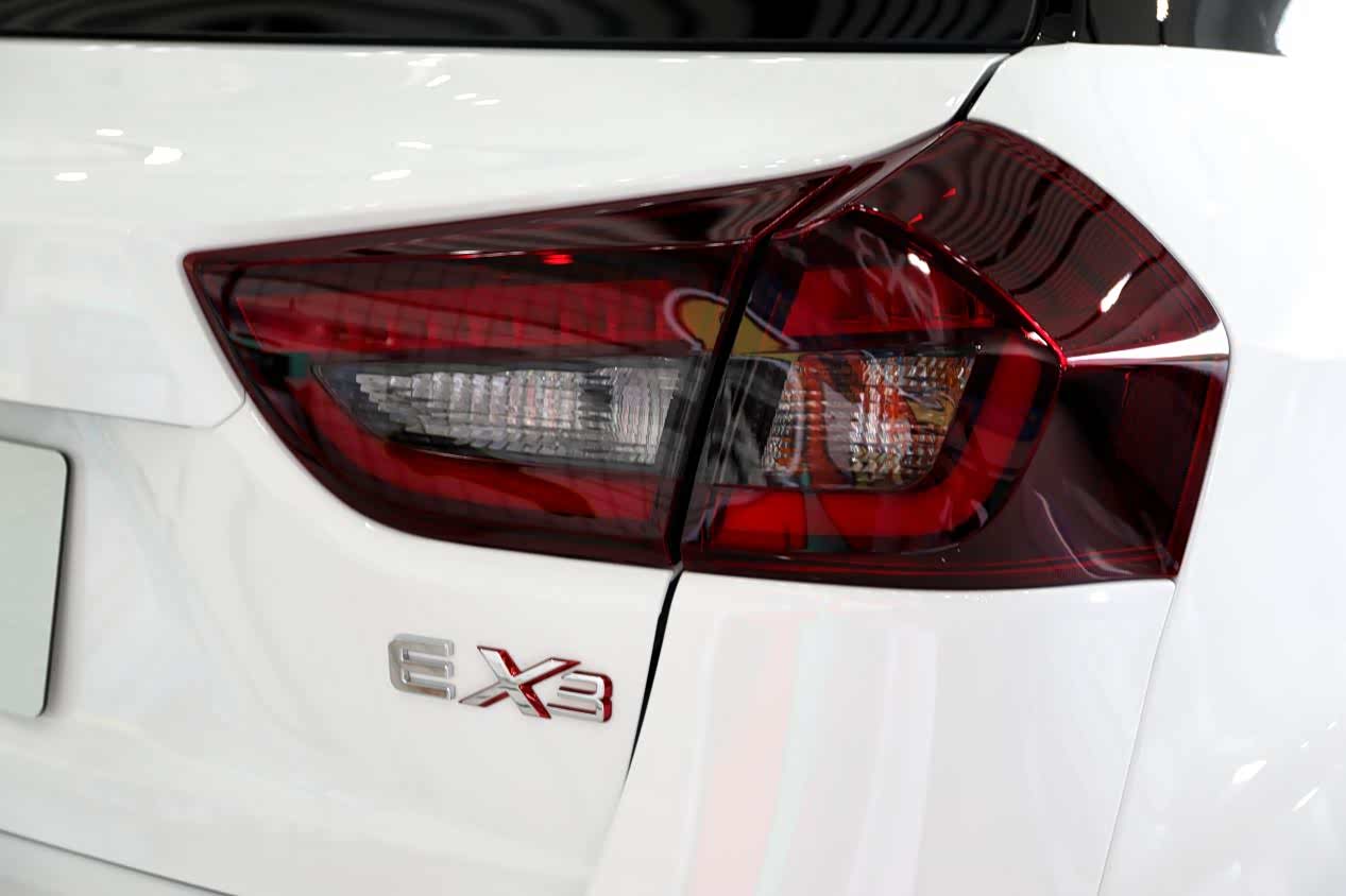 车尾部分,车尾横向线条、圆润的曲面以及外扩的轮拱让整个车尾看起来稳重扎实,棱角分明的尾灯、回勾线条的后包围都与车头相呼应。同时车尾上方点缀了一块小扰流板,下方还增加了类似扩散器的装饰,让整体增添了些运动气息。