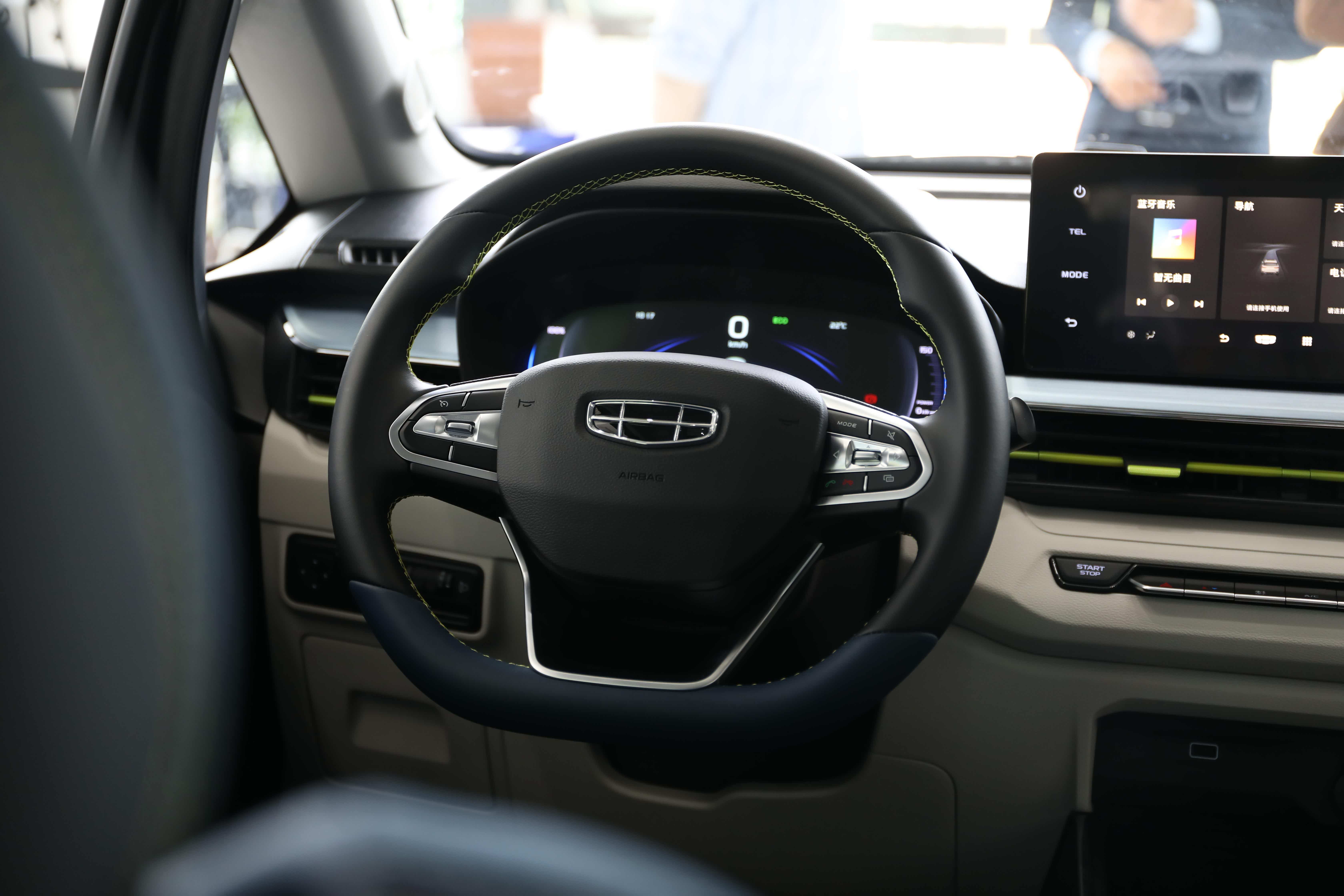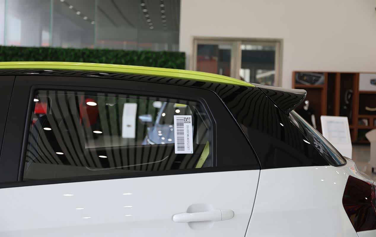 外观是整体沿用了吉利远景X3燃油车的设计,并在此基础上加入了封闭格栅、双色车身、柠檬黄细节点缀等新元素,使其看上去并不老气。就这套设计来说,它虽然并不新颖,也没有其他纯电小车那么可爱,但胜在整车的线条干净利落,没有太多复杂的元素,能给人带来一种简约自然的视觉感受。