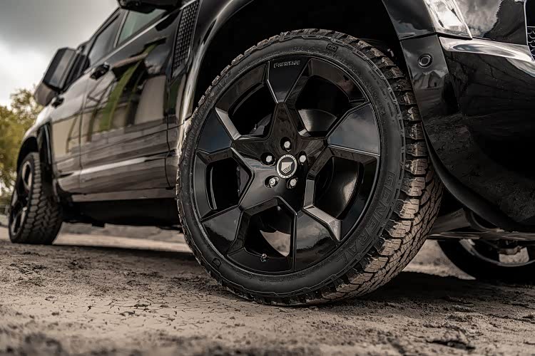 至于其它地方,也是最显眼处就是22寸的类齿轮造型锻造铝圈,虽然铝圈太大并不适合越野,但就以造型美感来看,绝对有加分效果。铝圈的颜色提供亮光黑或者消光黑色,这辆车的客户选择亮光黑色泽,尺寸上也能选择较小的20寸。如果真的是硬派玩家,建议选择20寸配上巧克力胎就很完美。