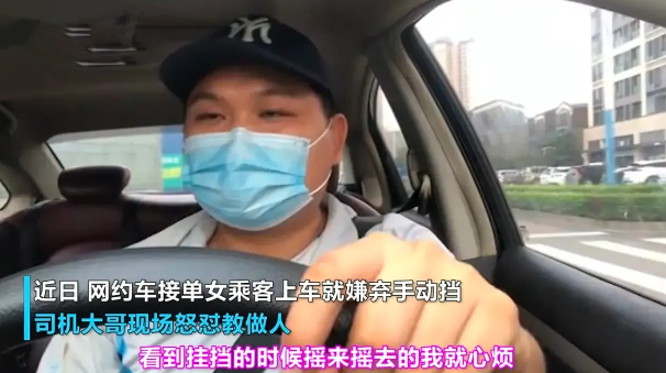 但女乘客却没完,“看到手动挡的车我就心烦,”停顿片刻之后,女乘客突然拉高了嗓门,“早知道是手动挡的车我就取消订单了!”