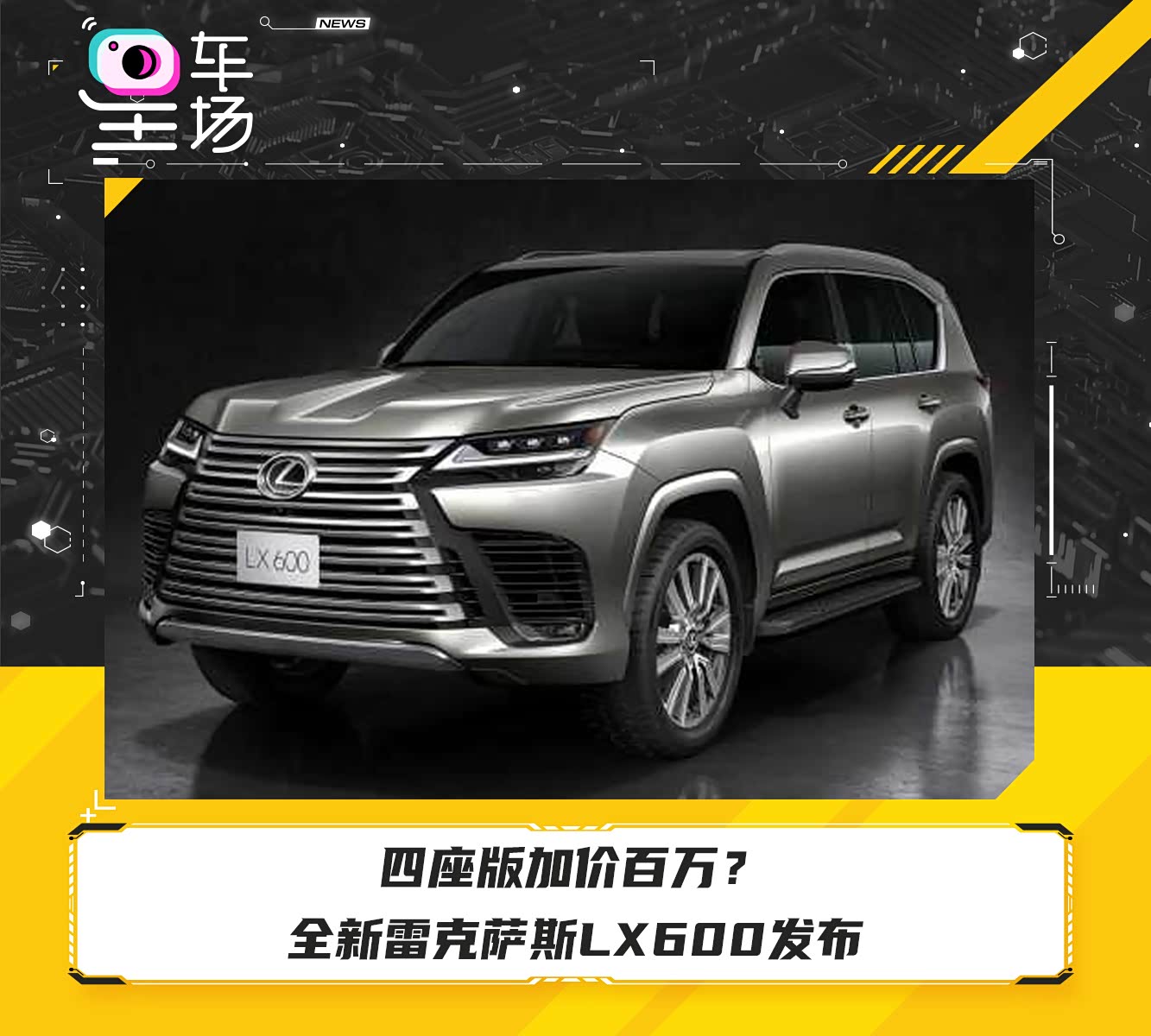近日,星车场从官方获悉,全新雷克萨斯LX600正式发布,新车与全新丰田兰德酷路泽(LC300)一样基于TNGA-F平台打造。LX600延续了非承载式车身形式,并且采用了全新的动力总成和命名方式。在传统7座版本的车型上,新车还贴心地首次提供豪华的四座版本的车型。
