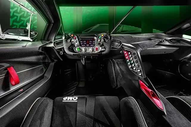 以新世代碳纤维单体式底盘为基础打造的Lamborghini Essenza SCV12,除了拥有仅1,380kg的轻盈体态之外,车内现在也不用再为了符合FIA国际汽车联盟的安全规章要求,特地装上额外的防滚笼。而说到安全,兰博基尼在Essenza SCV12的内装也全面使用上了耐热防火的Nomex纤维材质,以降低起火事故对于驾驶造成伤害的可能性。此外,车内还配有造型受F1赛车启发的多按键/旋钮开关方向盘,而两张碳纤维赛车桶椅同样有符合FIA的认证。