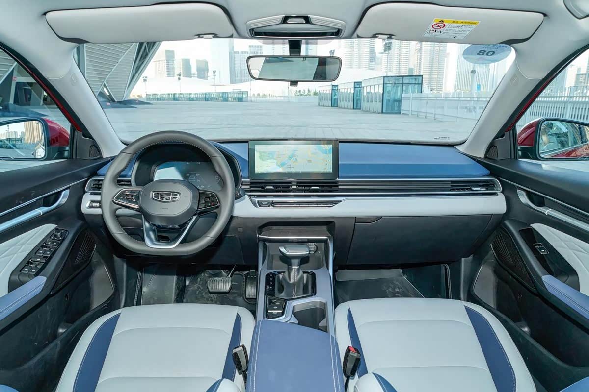 不过,新一代帝豪的整车质感,相比老款而言则是有着质的提升,甚至在新帝豪上,我们在车内还能看到比较有精致感、高级感的蓝白双拼配色;还有它的外观,也用上了吉利家族最新的设计语言,甚至吉利星瑞没安排上的贯穿式尾灯,到了新帝豪这里却没有缺席,拉满了夜间的辨识度。