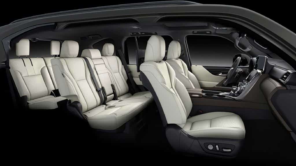内饰上来看,作为豪华品牌旗舰SUV,新一代LX600内饰与兰德酷路泽LC300相比更加“豪华”和“高端”。雷克萨斯在新一代LX600首次引入了“双屏”中控台设计,上部悬浮式屏幕尺寸为12.3英寸,下部嵌入式屏幕尺寸为7 英寸,看上去感觉有些“汽配城”的风格。同时新车增加了一款四座版的车型,后排是两个单独式的座椅,中间的中央扶手和中间的地台于前排的中央扶手连成一体。而7座版还是常规的232布局。