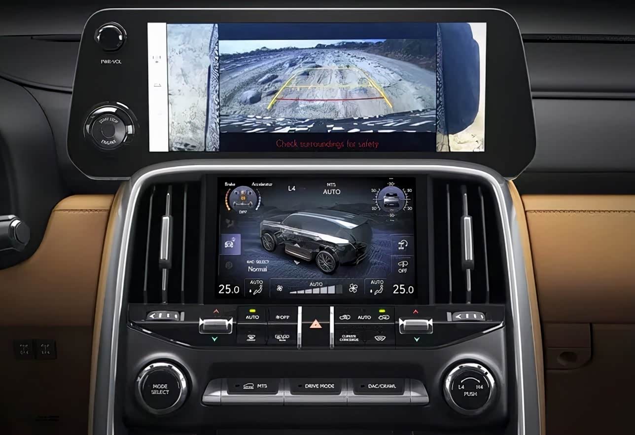 全新LX内饰设计的舒适性和实用性都达到了极致;仪表板中控台的主体结构以两块液晶显示器构建的多层次特征为主,12.3英寸的液晶显示器以悬浮式的姿态呈现,其下方的7英寸液晶显示器则通过饰条和中央出风口等功能性结构融合。