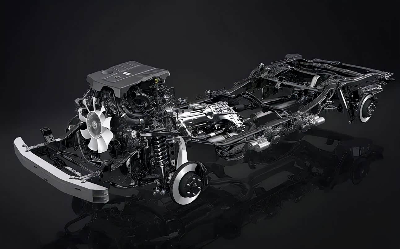 全新LX基于TNGA架构下的GA-F平台打造,这也是现在世界汽车产业链中少有的高端非承载式车身平台。在TNGA的架构理念下,GA-F平台重新设计了整套的大梁结构,降低平台重心和重量,并大幅度地增加车身刚度。