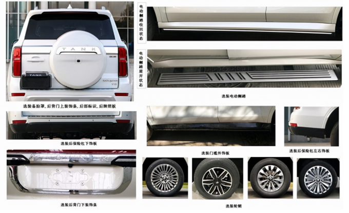 坦克500的外观设计并没有与之前的各种谍照产生冲突,但坦克500还是给大家准备了一份厚礼:两种前格栅样式、两种侧窗边框装饰风格,不同消费者可以有不同选择。