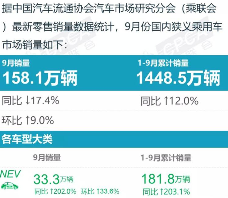 据中国汽车工业协会最新发布数据显示,9月电动车销量在整个乘用车市场零售同比下降17.3%(158.2万辆)的情况下,国内新能源汽车产量35.3万辆,环比增长14.5%,同比增长184.5%,销量35.7万辆,环比增长11.4%,同比增长148%,月度产销数据继续刷新历史记录,超出市场预期。