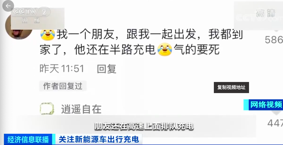 例如据中央台报道,一位新能源汽车车主从深圳回湖南,在耒阳服务区为了给其电动车充电,用了5个多小时,其中排队就耗时4个小时,期间厕所都不敢上,生怕充电被人插队。原本8个多小时的行车路程,却花费了他16个小时。