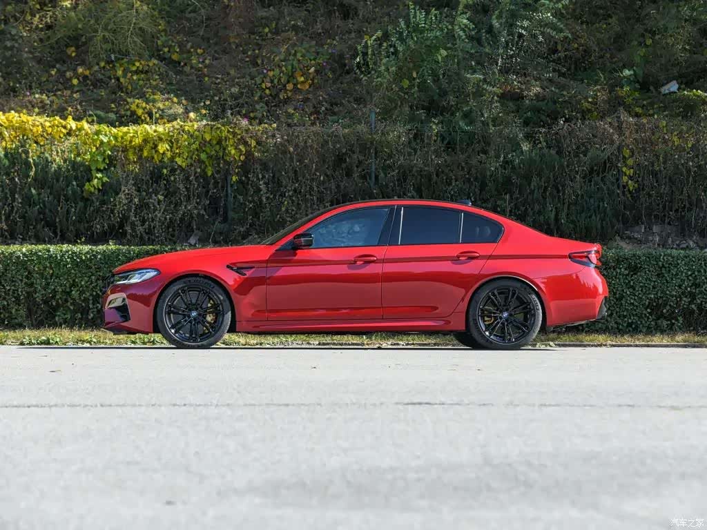 侧面线条的改动并不大,侧翼子板处依旧带有“M5”的专属标识,米其林PS4S轮胎能提供相当强劲的抓地力,图中这台展示车还配备了碳陶瓷刹车系统,国内的选装价格为12万元。