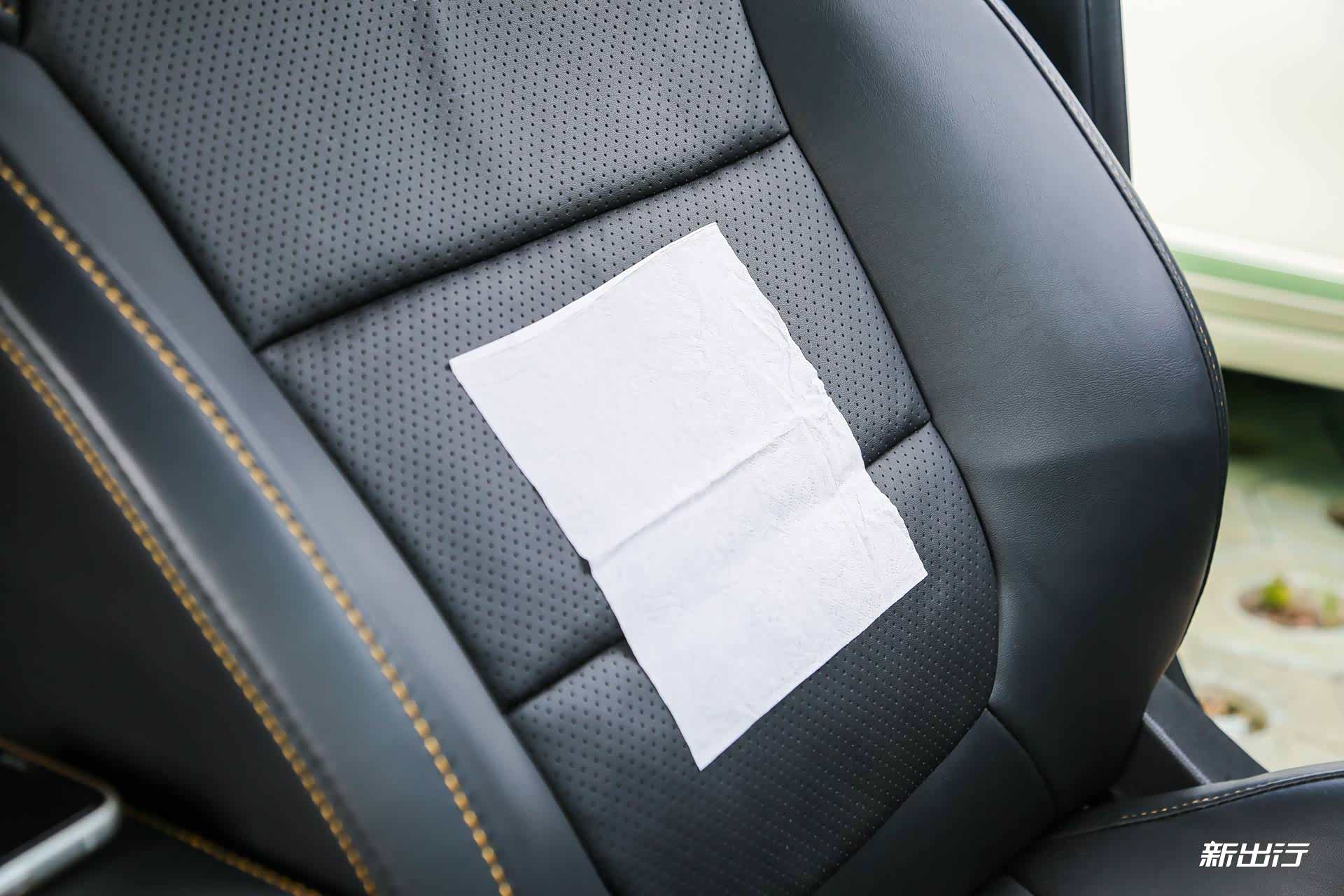 这个环节里我们使用了一张纸巾作为道具,来测试该车型的座椅通风属于哪种形式。首先我们来体验比亚迪宋PLUS DM-i 车型的通风座椅。