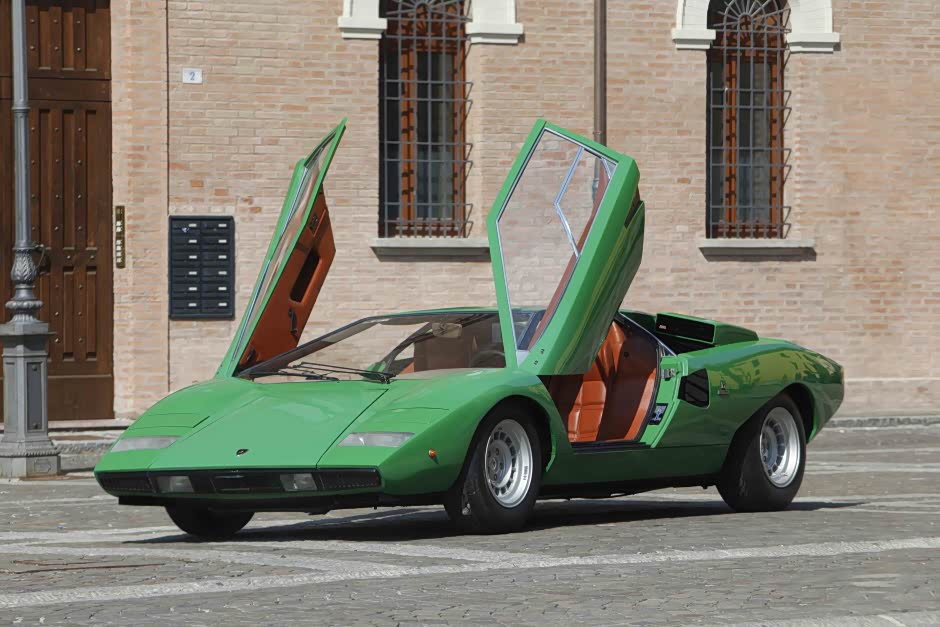 由 Marcello Gandini 于 1971 年设计的创新型 Countach 是第一款带有剪刀门的量产车。安装剪刀门不仅关系到审美的角度,也关系到垂直开启的门的功能性。事实上,通过安装剪刀门,驾驶员在倒车时有更好的后方视野,在窄门或长门难以打开的区域停车时也很有用。