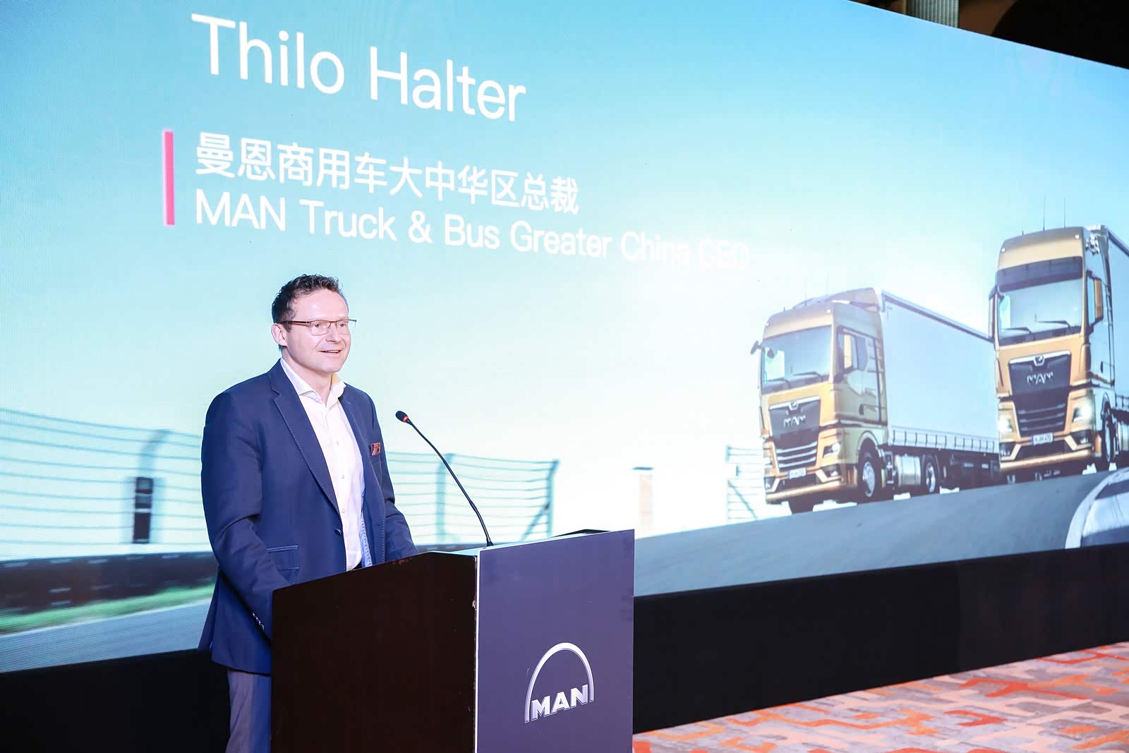 活动现场还有来自曼恩的多位部门领导包括曼恩商用车大中华区网络发展部总监朱金波先生、曼恩商用车中国产品市场经理史希仁先生、曼恩商用车中国维修保养合同与客户关怀经理张宝玉先生、曼恩商用车中国业务解决方案高级经理丁妍女士等,为到场的客户与合作伙伴详细介绍了全新一代TGX产品性能亮点、配套的售后维修保养服务、MAN TCO车辆全生命周期成本管理、二手车置换认证流程以及二手车合作平台狮桥集团系统等内容。