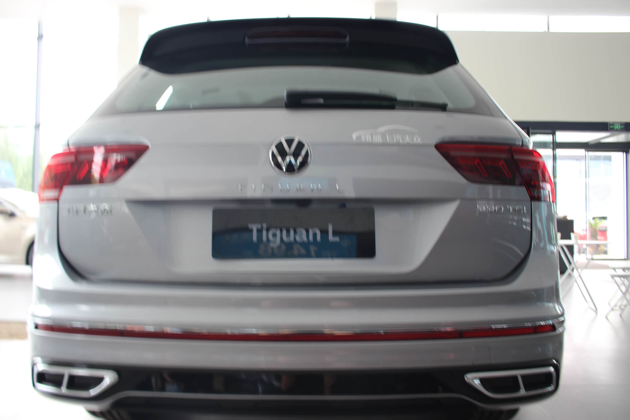 2022款大众途观L的外观设计的高级时尚,整个前脸的样式更上档次,进气格栅处理的修长,多横幅式的中网包裹了银色饰条,并且装饰了修长的灯带,前大灯组处理的更加精致,内部透镜较为宽大,点亮之后的视觉冲击力不错,两侧扩散器设计的较为夸张,并且装饰了镀铬饰条,中间的进气口是梯形的样式,前保险杠很扎实。