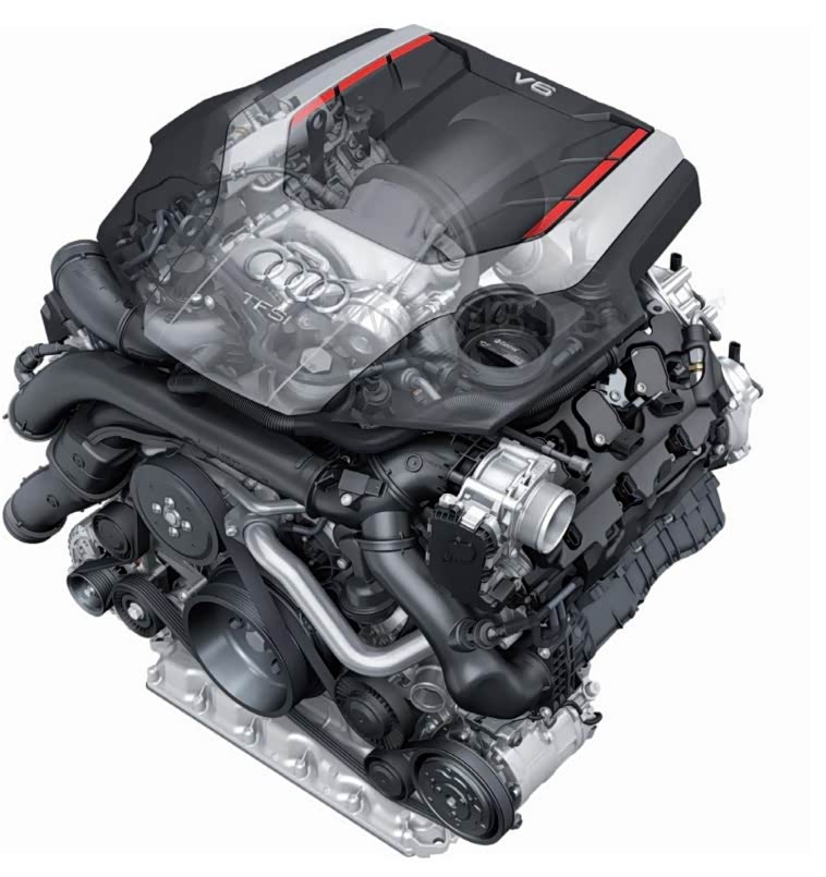 (来自于全新的EA839 3.0L V6涡轮增压发动机,最大可爆发出354马力及500扭矩的强力输出,较老款EA837在结构上也发生了全面的变化)