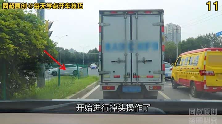 扫视一下绿化带顶头位置,并没有禁止掉头标志,那说明这个路口是允许掉头操作的。路口允许掉头,有明示和暗示之分:明示就是直接在路口设置掉头标志,或者在地面直接画掉头标线;暗示就是没有设置禁止掉头标志或标线,虽然也没有设置允许掉头的标志标线,但是默许可以进行掉头操作的。