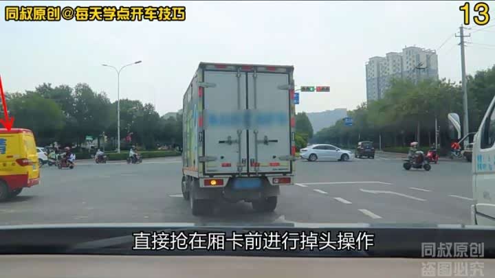 厢卡减速就是不跟他计较,假如在微面抢行左转掉头之际,被厢卡撞到的话,微面是要承担全部责任的。