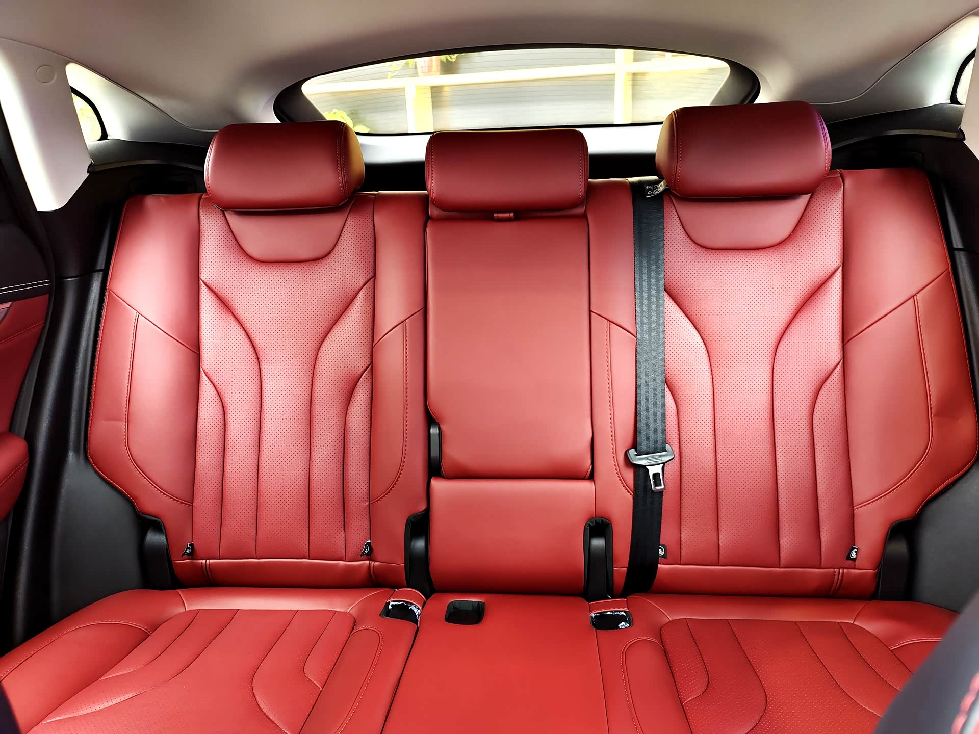 座椅使用了打孔皮革材质进行覆盖,填充物比较软,乘坐舒适性尚可。