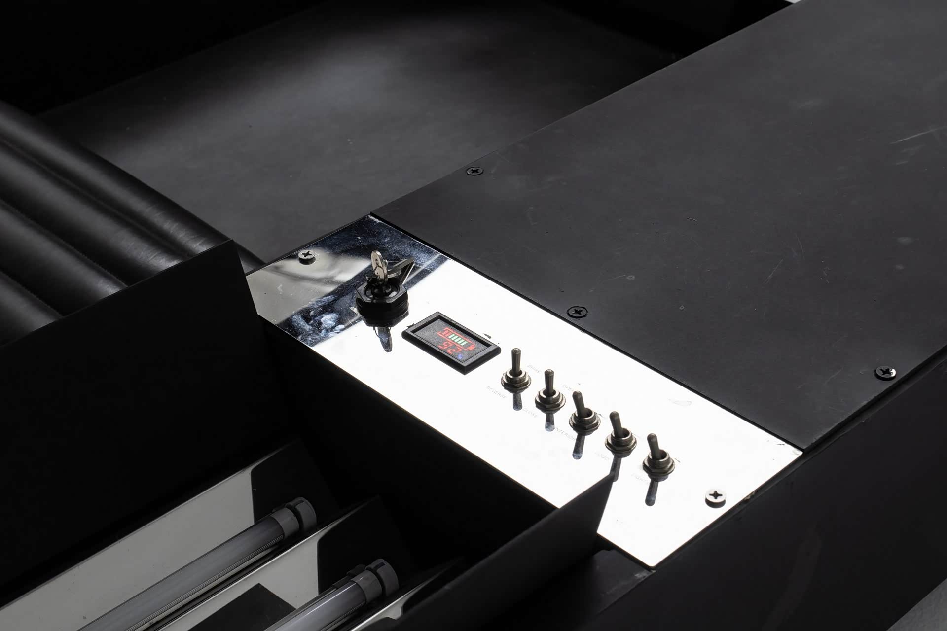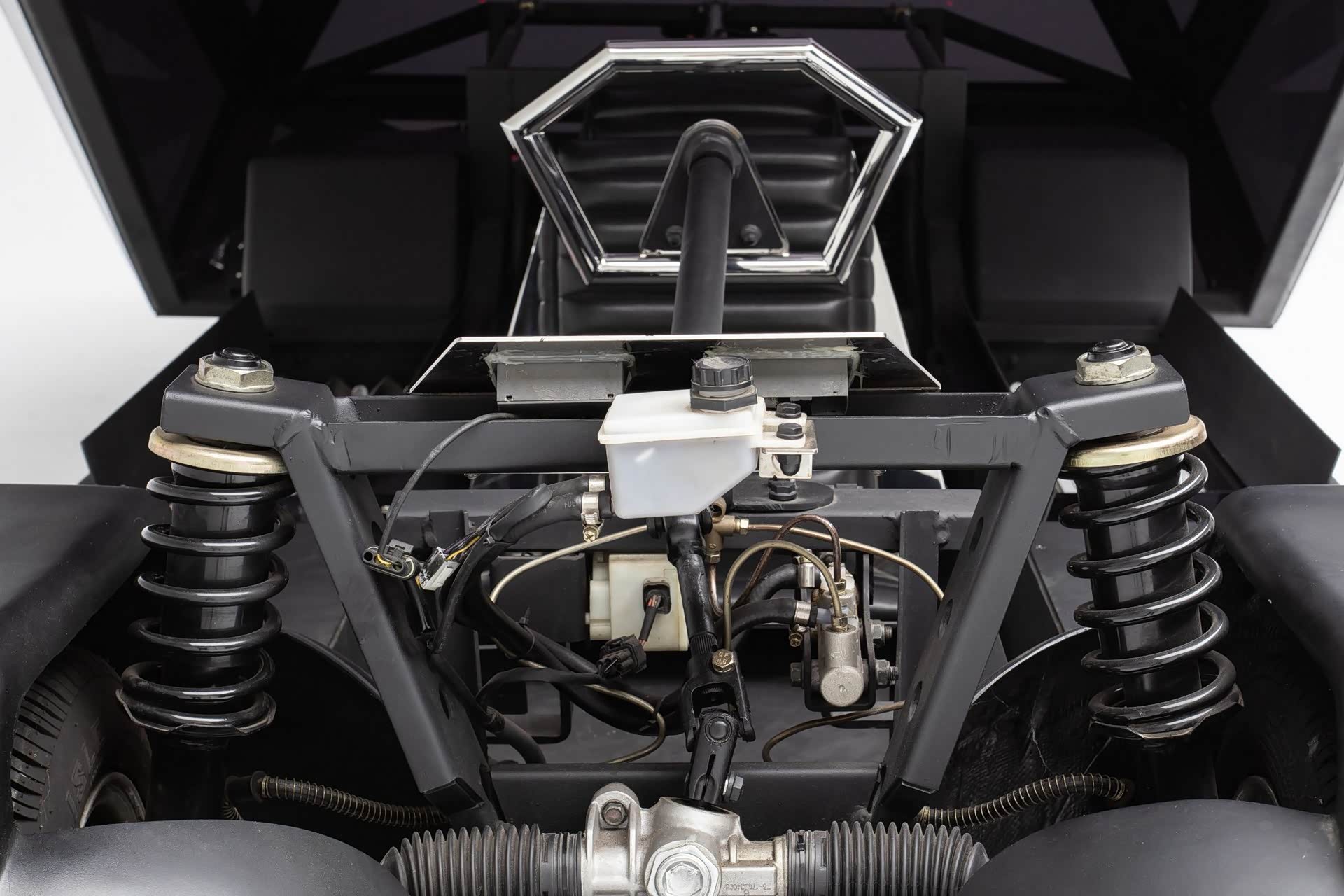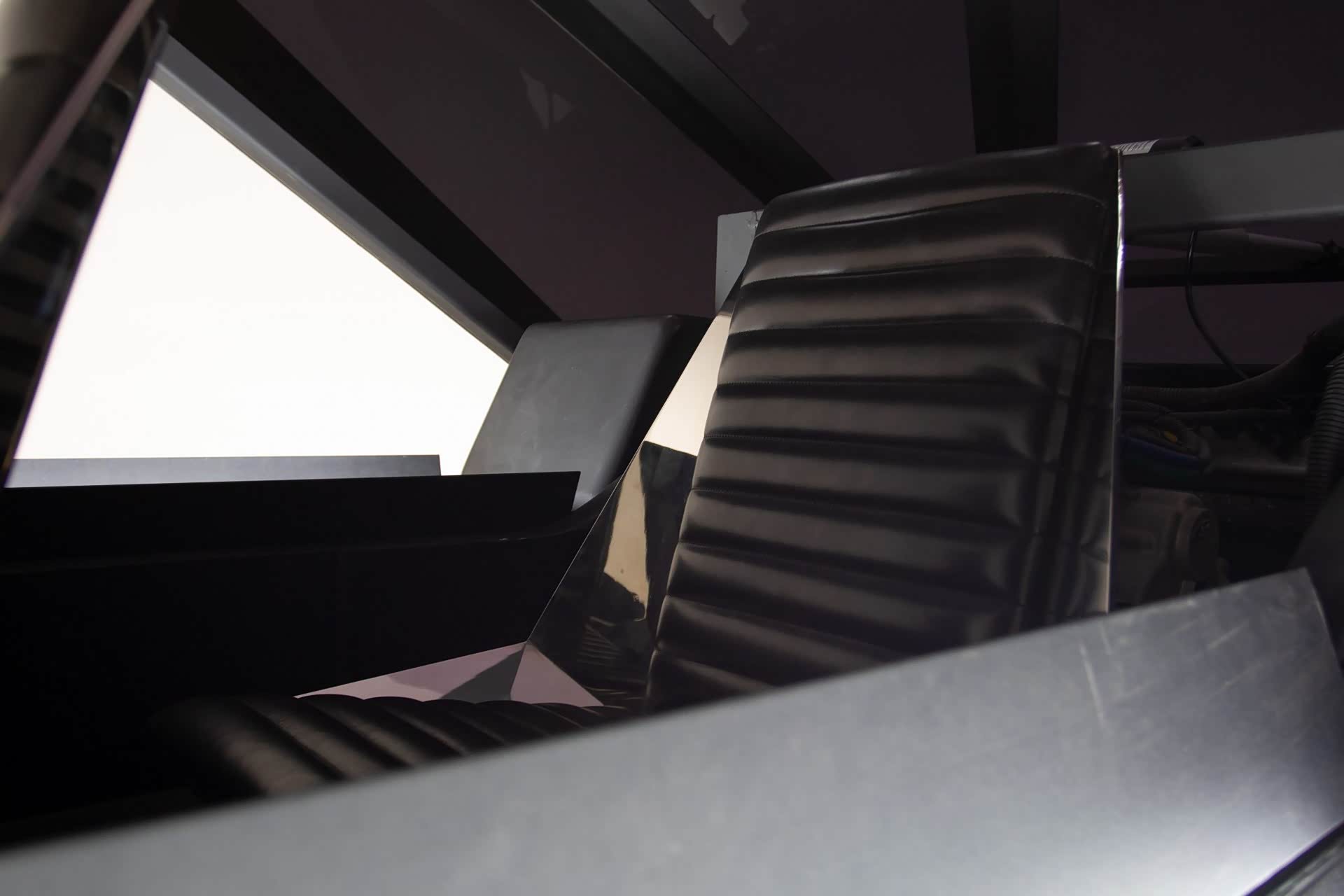 车身由透明的聚碳酸酯板制成,它包括前后的灯条。在下面可以看到汽车的钢管框架底盘,上面有两个直排座椅和一个镀铬的六角形方向盘。