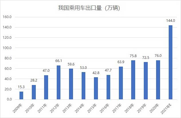 车评网记得2012年,我国乘用车年出口量达到了66.1万辆,当年业内人士都备受鼓舞,甚至开始畅想10年内能够超越日本,而当年日本乘用车出口量在400万左右。然而没想到此后的近十年,我国乘用车出口量几乎停滞,直到2018-2020年,年销量仍然徘徊在70多万,而且期间还曾经回落到40万左右,可谓大跌眼镜。