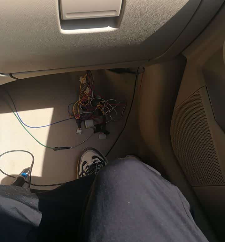 副驾驶下方的线束胡乱走位,猩猩真的是无语了,盘丝大仙的盘丝洞也不过如此吧!