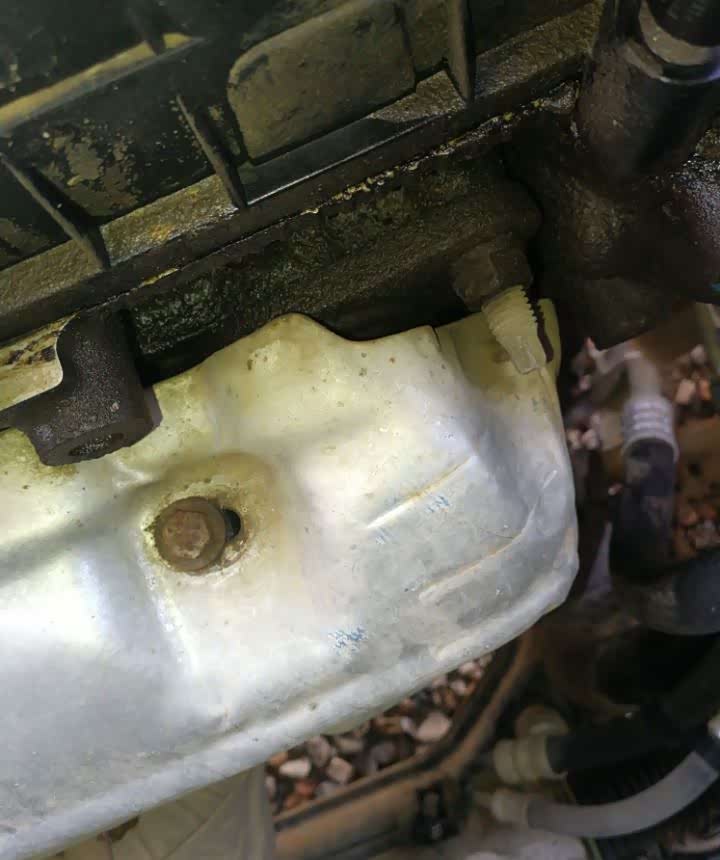 发动机和变速箱的连接螺丝存在拆卸痕迹,看那灰尘的厚度不像是近期拆的,再结合变速箱油底壳及其周边的螺丝痕迹,可以确定变速箱之前有过维修。