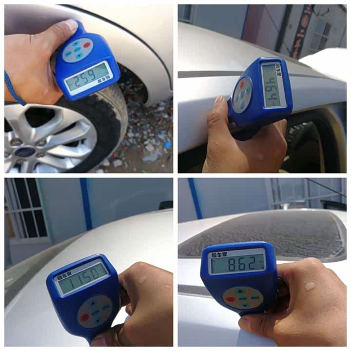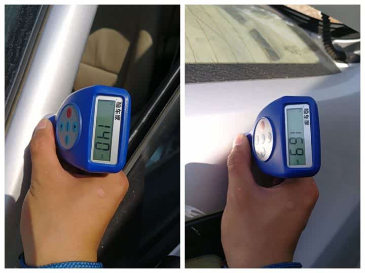 正常的车漆厚度应该在110μm到130μm之间,而左后翼子板的数据高达1374μm,这是什么情况呢?答案是钣金刮腻子喷漆修复了,这个部位应该有过刮蹭造成了铁皮变形,修理工钣金敲打回来,再上腻子喷漆,不是什么大问题。
