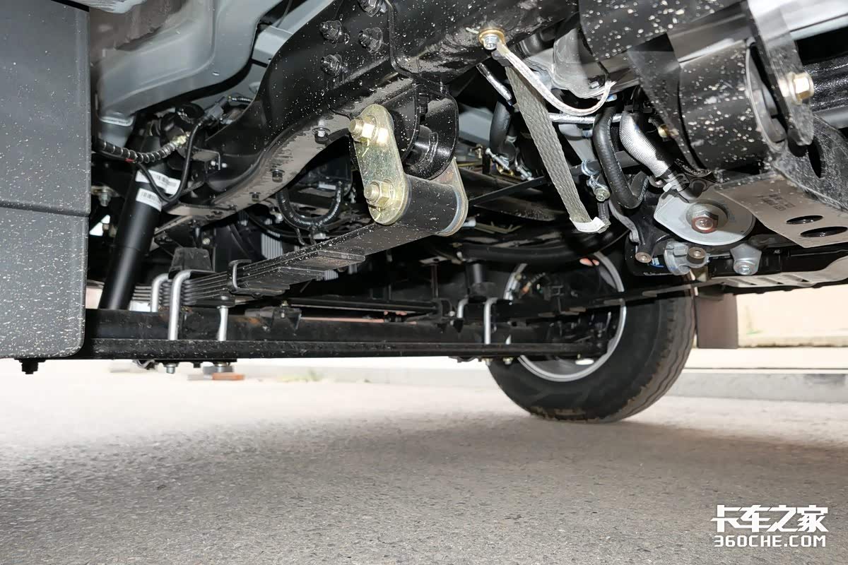 如果你觉得还是不够“硬”,再看看它的板簧设计,神骐T30采用6/7+6高刚性主副板簧,其主簧采用加宽加厚设计,最厚可达0.9公分,轻松应对超载和特殊路况。前板簧为对称簧,减轻颠簸感,提升整车平顺性,驾驶舒适感提升。可以说整套板簧设计既能耐久多拉、提升承载,又能兼顾舒适性。