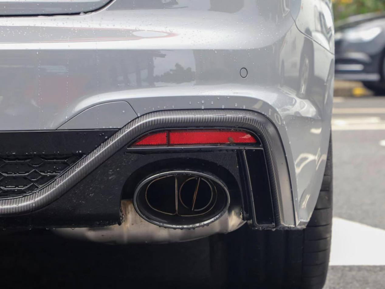 所以对于RS5,它并不是升级版S5,而是一台全新调校的高性能车。虽说造型与A5和S5相差不大,但还是有许多“RS”专属元素,比如铭牌、RS熏黑车标、下包围进气口造型等。最明显的区分方式就是排气,S5是双边四出,而RS5是双边双出,但是排气孔口径更大,战斗气息更强烈。除此持外,你还可以选装CFRP碳纤维材质车顶,可以使整车质量降低4公斤,提升性能的同时视觉效果更出色。