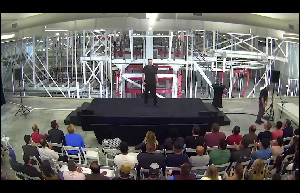 很难想象,作为全球市值最高的车企,特斯拉的股东大会竟然举办的如此简陋,在还未建成的奥斯汀超级工厂里,在一个简单的台子上,没有鲜花没有横幅也没有香槟。