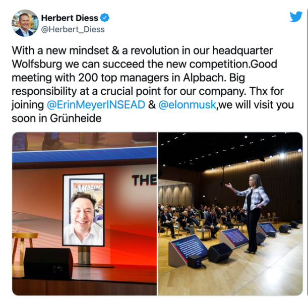 这是马斯克做出的判断,事实确如他所言,如今的汽车厂商都在进行电气化转型,有意思的是,大众CEO近日还邀请马斯克为旗下高管进行演讲,这也是大众对特斯拉对马斯克的认可。