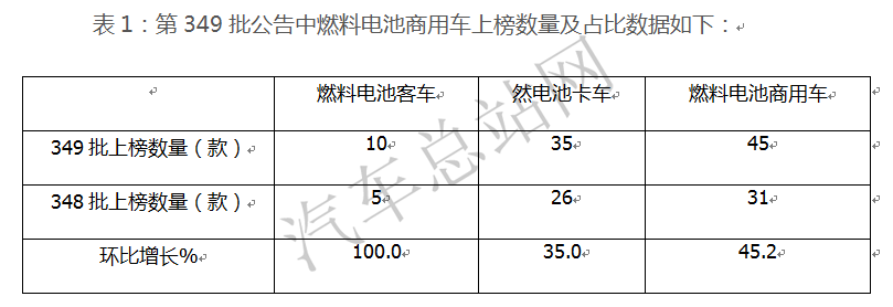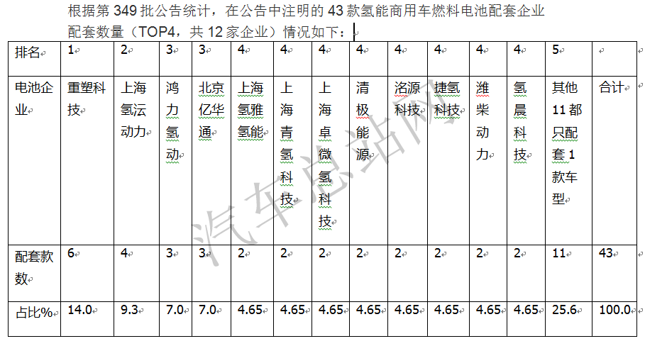 (截图1:第349批公告上榜的燃料电池商用车配套商统计)