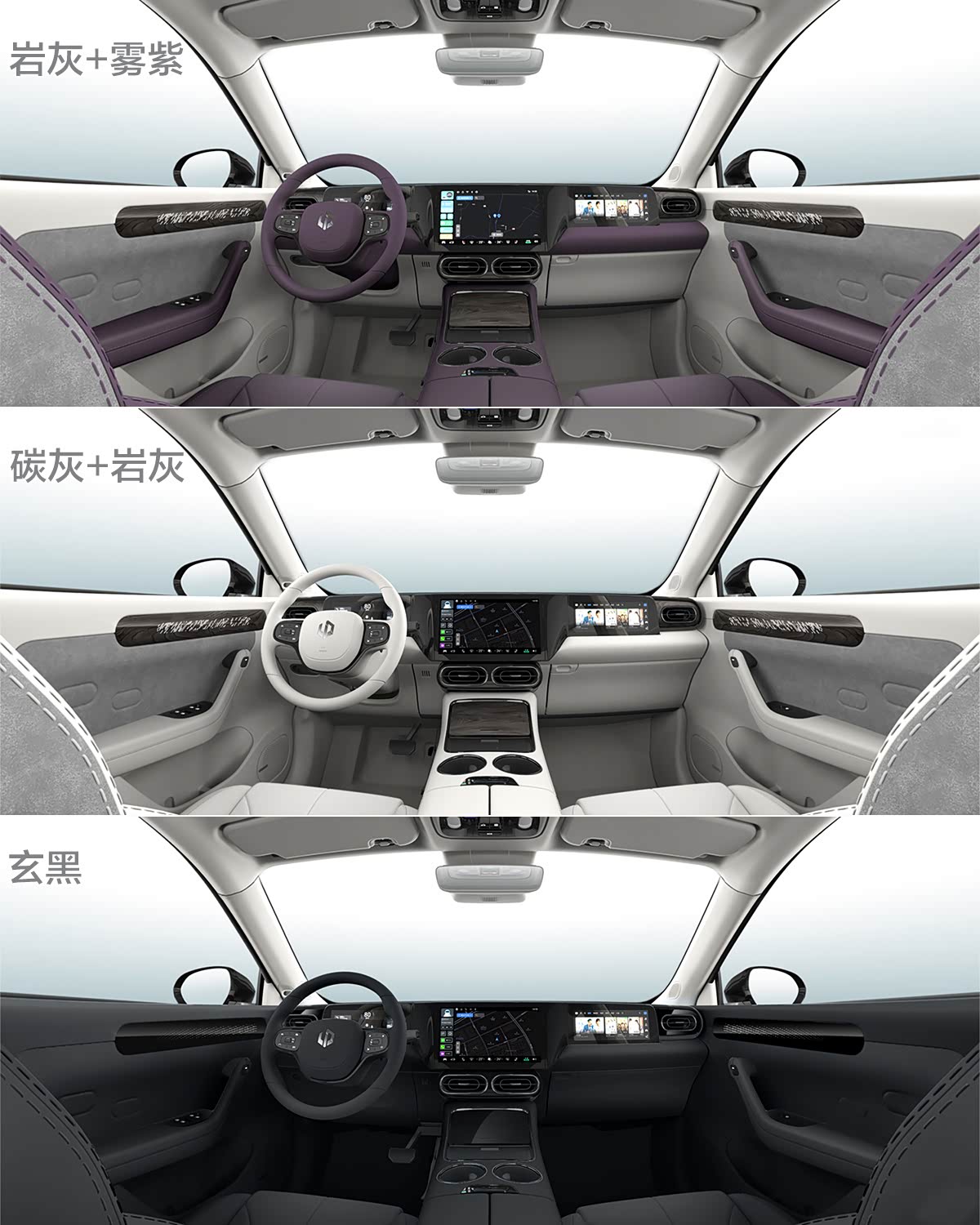 与外观相比,零跑C11的内饰显得更加前卫,T型中控台上的12.8英寸触控屏与10.25英寸仪表盘、10.25英寸副驾驶屏连为一体,飞翼式的布局极具科技感。此外,新车内饰拥有三种不同风格主题配色,加之精致的黑色烤漆面板、银色镀铬条以及仿木纹面板的覆盖,内饰整体豪华感油然而生。