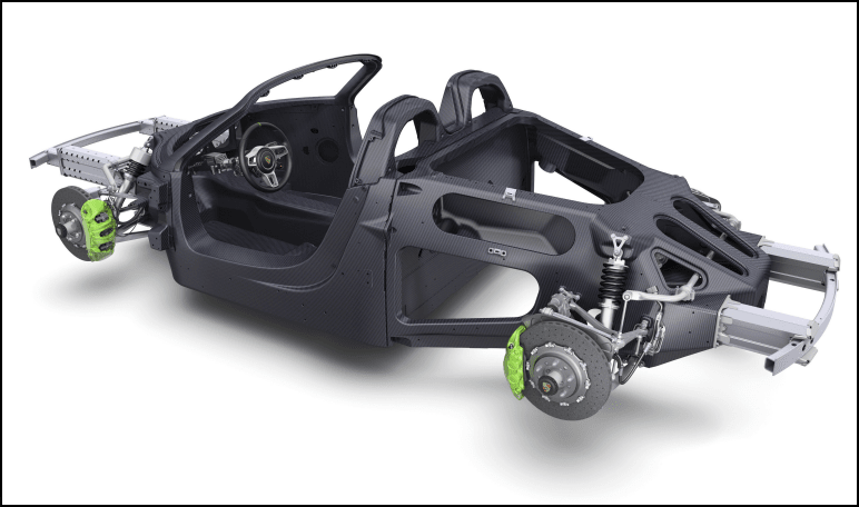 也有例外,比如超跑常见的澡盆型碳纤维车架,在开发之初就没有将车顶纳入应力结构(或是不作为主要结构)。这样的车身无论硬顶还是敞篷,刚度都不会有显著区别,也就无所谓是否将车顶部分车身纳入“底盘”范畴了。