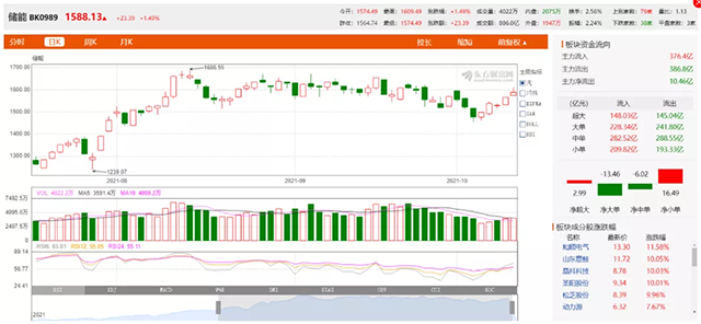 10月18日,华为官宣签约全球最大的储能项目消息一出,10月19日,储能板块掀起涨停潮。截至收盘,和顺电气上涨11.58%,山东章鼓、松芝股份、晶科科技、圣阳股份等多股涨停。