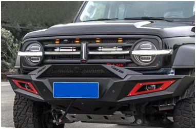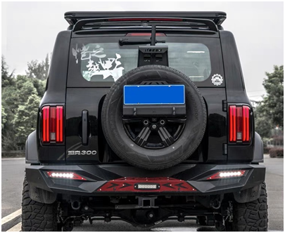 原车的塑料包围在一些极限地形下可谓不堪一击,更无法为水箱中制冷等重要部件提供保护,所以加装前杠就显得尤为重要!在提升接近角与防护性的同时,用犀利的梯形线条与坦克300方正复古的前脸融合到一起,既保留了原车风格,又增添了十足的“刚毅”。保险杠上还可以加装绞盘,在野外如果碰到车子陷进泥坑或者其它困境的时候可以通过这个脱困。