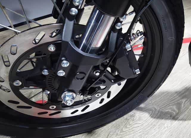 倒立式前叉、中置后避震,刹车部分前后均为碟刹形式,前双活塞刹车卡钳,后单活塞刹车卡钳,前后均有ABS防抱死系统。