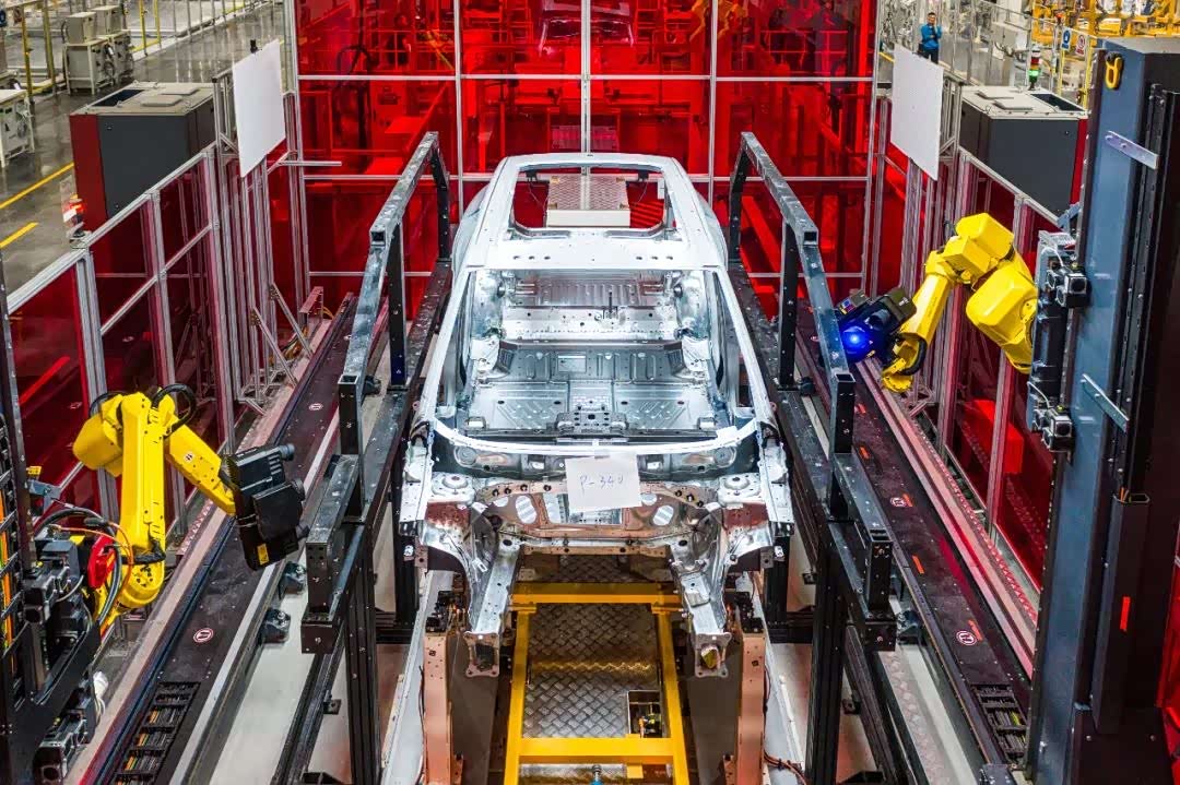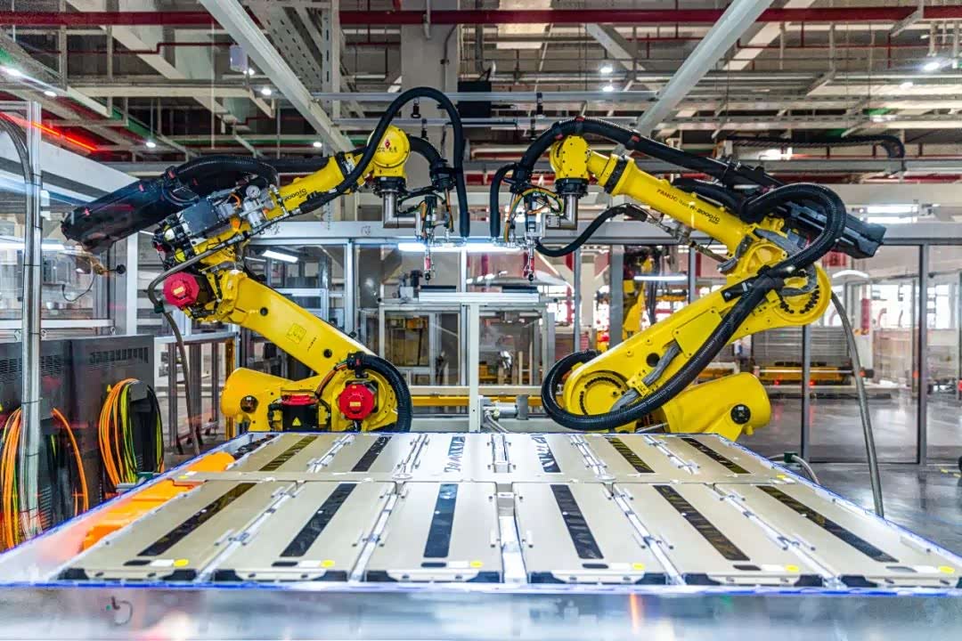 电池车间共有壳体和装配两条生产线,均生产MEB平台的两种铝质电池壳体和三款电池包,拥有超过138台机器人,壳体的生产线自动化率达88%,装配线的自动化率为78%。据官方介绍,整个车间只需要76名直接生产人员便可完成两款电池壳体和三款电池包产品的生产,从而降低人工成本,实现高自动化率。