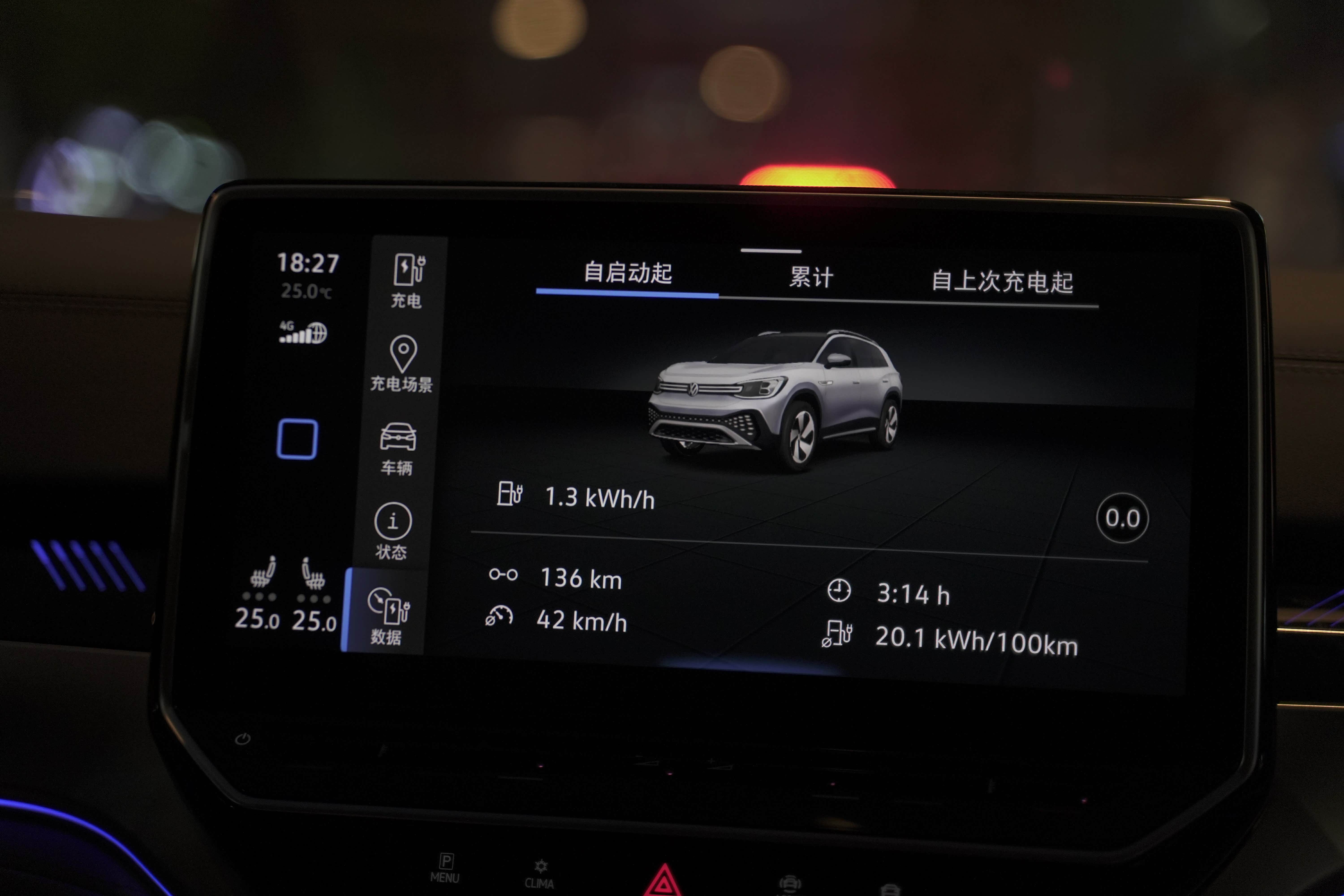 从数据上看,ID.6 CROZZ动力电池采用三元锂电池,通过84.8kwh大容量电池系统+175wh/kg高电池包能量密度。续航水平为单电机标准版439km、单电机长续航565km以及双电机性能版516km,与同级别的其他车子相比较,其优势就显得比较明显了。很多人可能会担心官方续航与实际续航不符合的情况。而我实际体验下来,在全程136km的试驾距离中,路途有山路有城市道路。而且我在路上超车还是很频繁,电量从最开始时的92%消耗到了56%,表显续航里程也从409km下降到221km,所以实际与显示消耗相差不大,而开启动能回收系统并关闭空调后,数据还会变得更好。在新能源车里面,ID.6 CROZZ的续航里程真实性算比较高的了。