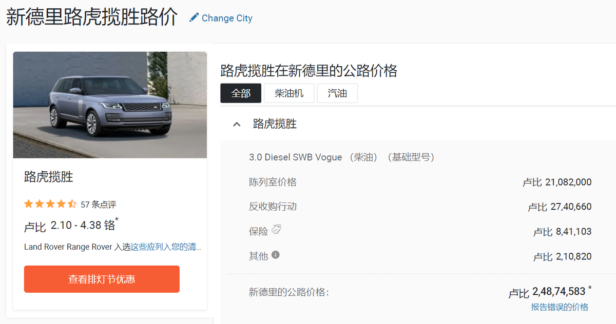比如在新德里路虎揽胜的起售价要2108万卢比,折合人民币180万起售,而我们国内的路虎揽胜起售价在122万起售,印度路虎揽胜的起售价大约比我们贵了50%,虽然捷豹路虎被印度塔塔集团收购了,但只有很少的车型在印度有生产,揽胜这类进口车照样是“天价”。