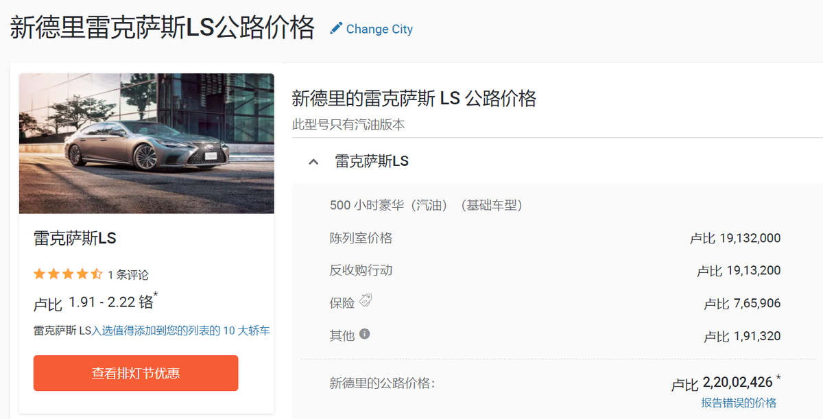 再来看看雷克萨斯LS的售价,其基础版在新德里的售价就高达1913万卢比,折合人民币163万人民币,而雷克萨斯LS在国内的售价仅87.8万元起,相差了近一倍。这里主要是雷克萨斯LS还是以进口的方式进入印度。而以CDK(全散件组装)的奔驰S 450 4Matic的售价则为1620万印度卢比,约合人民币为139万元,和国内的108.48万元的起售价相差不大。