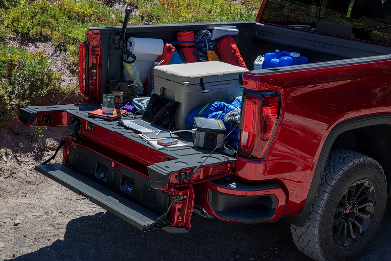 相比于专注奢华感的Denali Ultimate,新款AT4X将舒适性与越野能力融为一体,采用了高档黑曜石内饰配色,与Denali共享多项豪华配置,包括天窗、平视显示器、Bose音响系统和电动座椅等,GMC经典多段式尾门也不会缺席。AT4X的特殊之处在于拥有多重DSSV滑阀阻尼器和越野调教弹簧,相比普通AT4版本悬挂行程增加了25-50毫米,配备了前后电控差速锁、底盘护板、固特异牧马人MT胎中,还应用了越野单踏板驾驶模式。